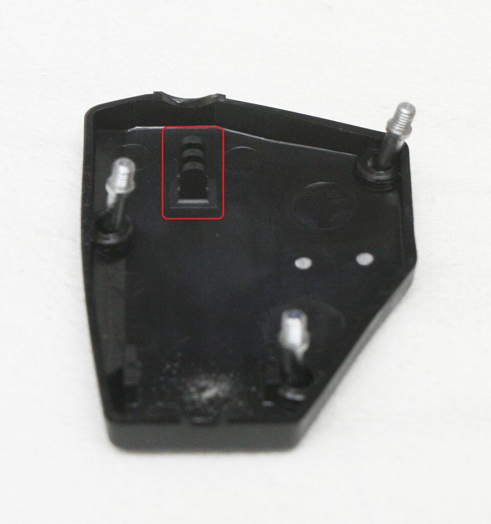 The support for the ratchet spring can still be seen here, but it is no longer used in this revision 02, therefore it is no longer drilled.