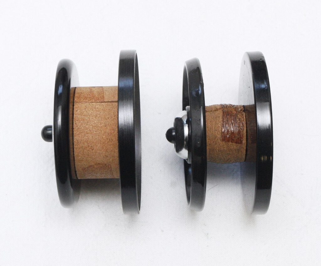 There was also a whole set of different-sized cork spool cores for these bobbins, you can see two different ones here. More on that in my next report.