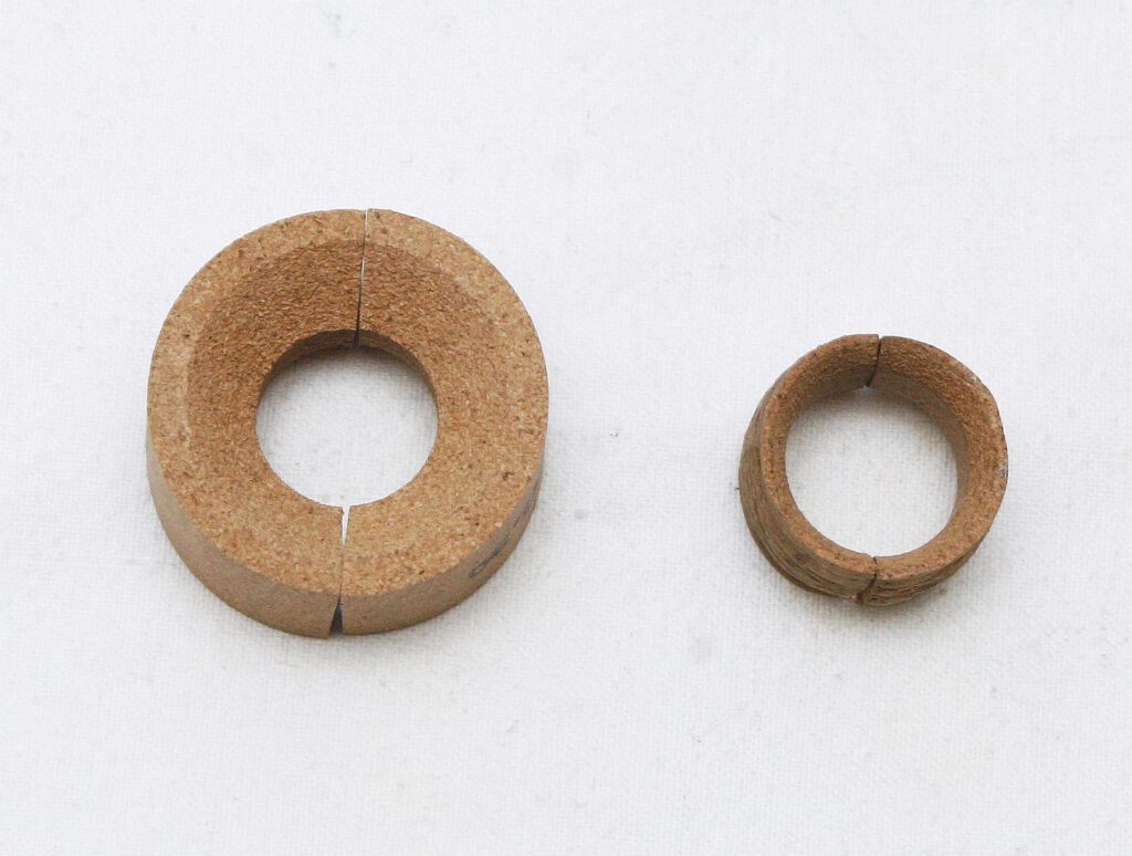 Hier mein grösster und mein kleinster Spulenkern aus Kork ! Aber es gibt noch viel mehr Grössen und auch aus verschiedenem Material !