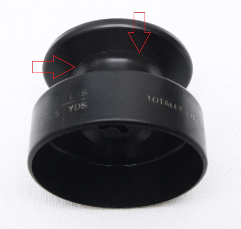 Tip 3: Bevor ihre eine Spule, neu bespult, die Spule gründlich reinigen und auch innen, nach Rissen schauen! Denn wie ihr seht, diese Spule hat innen einen dicken Riss und das Vorderteil, hängt am seidenen Fädchen. Diese Spule hat Totalschaden und muss sofort ausgetauscht werden !