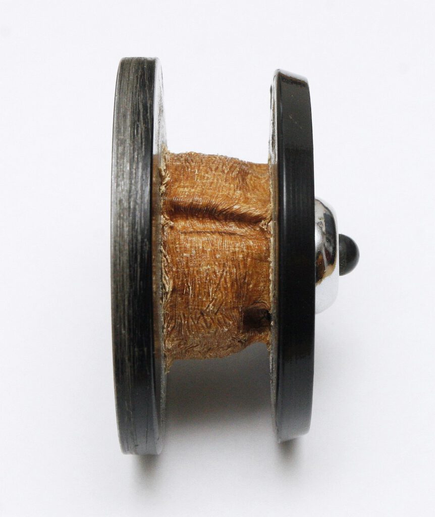 Tip 2: Die Spule vor jedem Einsatz, genau auf Risse oder andere Beschädigungen untersuchen ! Denn das Gegenlager für den Druckknopf, ist ein Stanzteil und unterliegt grösseren Toleranzen als z.B. ein Drehteil. Sollten die Passungsmaße zu eng sein, kommt es kurz oder lang zu Spannungsrissen , wie bei dieser Spule ! Sie muss sofort ausgetauscht werden!