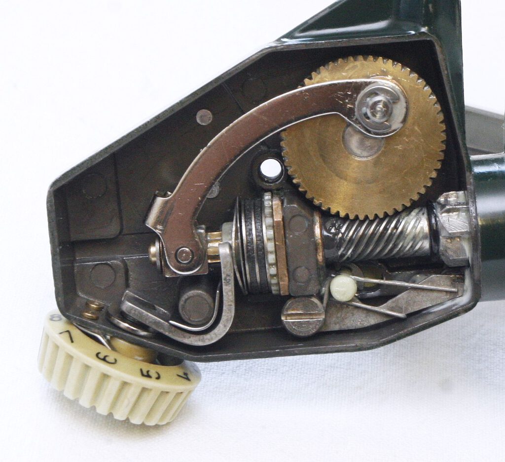 Spool feed arm: Version 1. The spring of the anti-reverse mechanism is now longer.