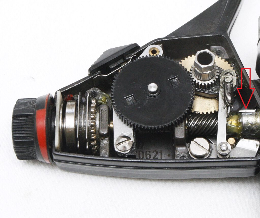 Here is the open gearbox. A silent backstop was also installed on this reel. The backstop only has a single locking detent on a whole revolution and not the usual 8 pieces?