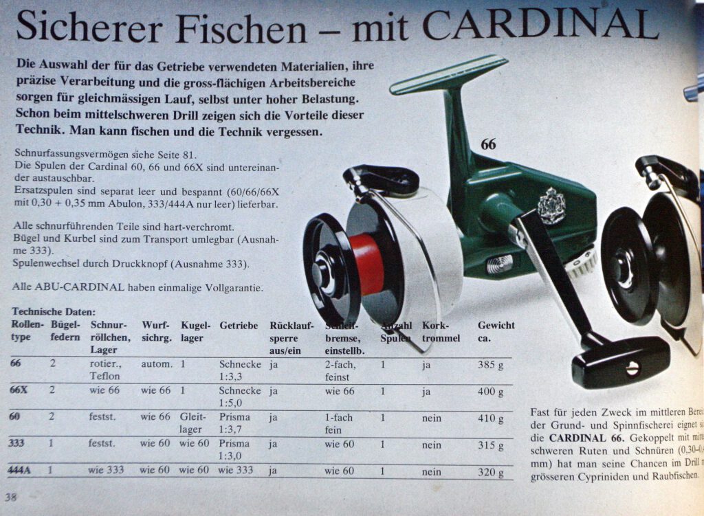 The photo of the ABU Cardinal 66 x is from the Petri Heil catalog of 1977.