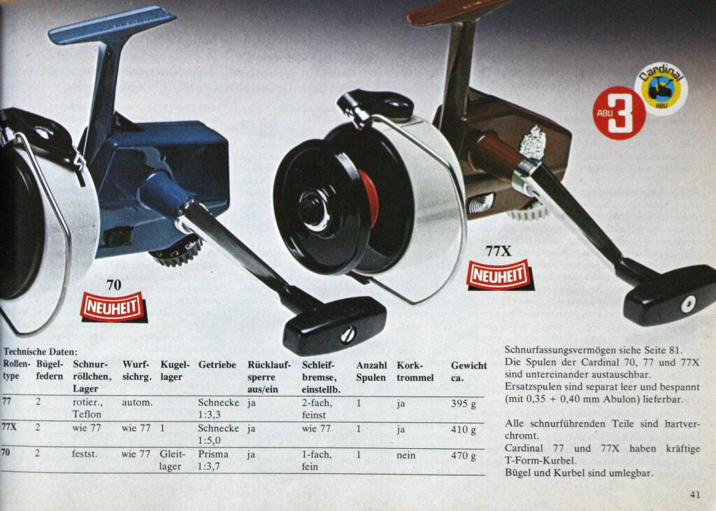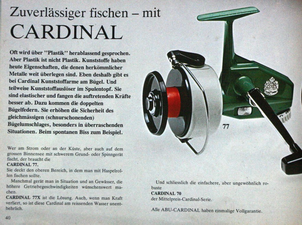 The photo of the ABU Cardinal 77 x is from the Petri Heil catalog of 1977.