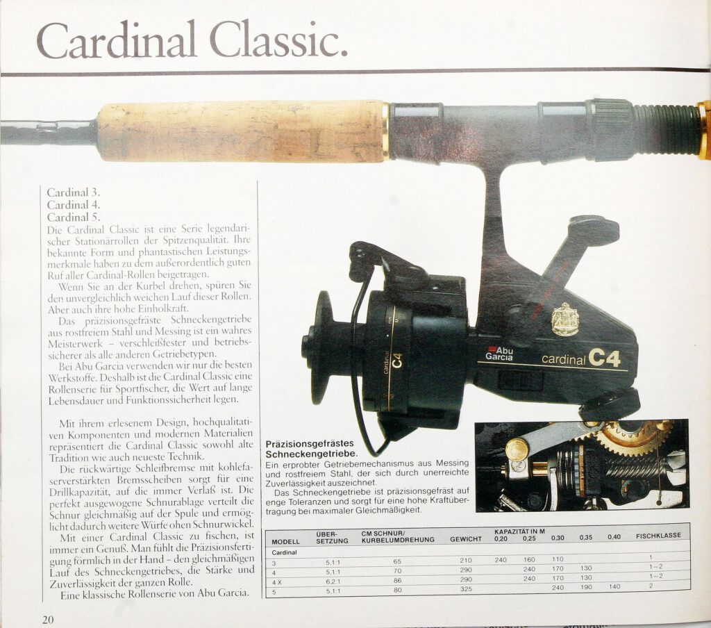 Here is an image of the predecessor model of the Cardinal C4 Black, page 20 from the German ABU catalog Petri Heil from 1987. For the technical data.